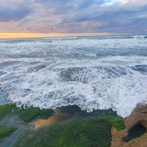 ככל שנצברים ימי גשם, הסלעים בחוף שלי, הופכים לירוקים. אלפי אצות יוצרות מרבד דמוי דשא, עם לגונות שלתוכן נשפכים מפלונים חמודים. ואיזה פליטות פה יש לים בחורף, ששוות התבוננות. כל-כך הרבה צורות אמורפיות, שמפעילות את הדמיון, שלא רוצה שום דבר קונקרטי ומובן מאליו