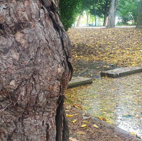 שינוי שלא ניכר בגוף שלו, אלא במדרכה שמתחתיו, שאוספת את כל הטוב שנשר והופכת למצע מרשרש