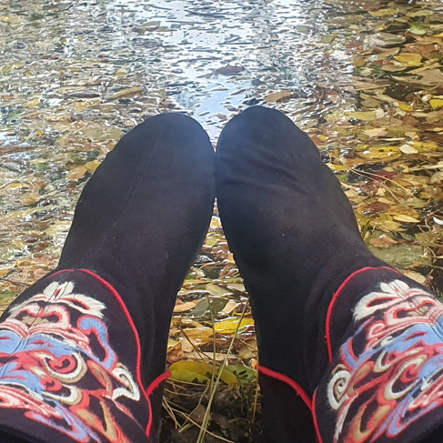 איזו פלטת צבעים עשירה. צהוב, כתום, אדום, זהב, נחושת, גוונים שאין להם שם, והם פשוט שם. מחכים שתראי אותם, שתרגישי את המגע המרפרף שלהם, המתפזר, הנידף